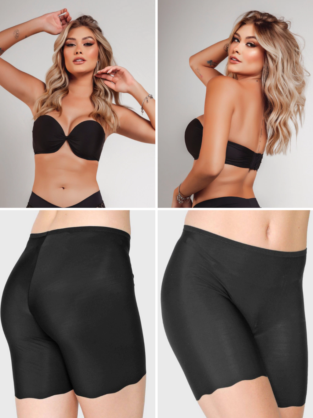 Este kit une duas peças essenciais do guarda-roupa feminino, feitas para valorizar o seu corpo com liberdade, estilo e funcionalidade. O Sutiã Tomara que Caia Super Sustentação Ref. 5311 é referência nacional em suporte sem alças. Já a Bermuda Modeladora Versality Ref. 3000 é a escolha ideal para definir a silhueta com conforto e discrição o dia todo.