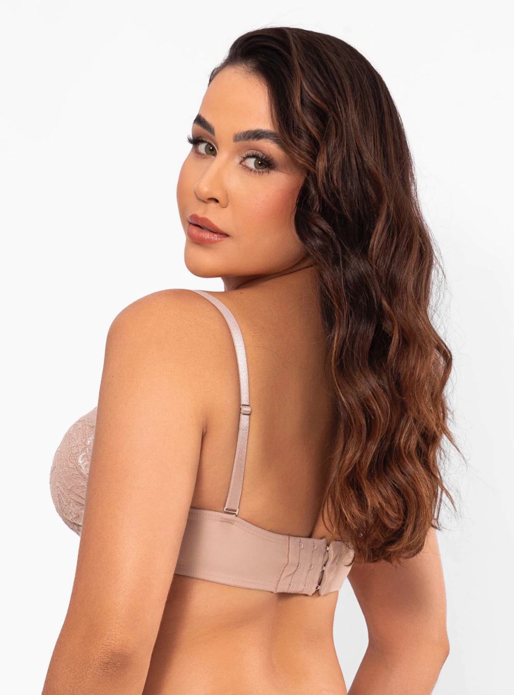 Esse sutiã rendado com bojo possui alças multifuncionais, removíveis e reguláveis que podem ser usadas no modelo tradicional, no estilo nadador (cruzado), frente única e sem alças!! Isso mesmo, são 4 MODELOS EM UMA ÚNICA PEÇA! E ainda por cima tem todo o charme e beleza da renda para dar aquele up no visual. Um verdadeiro tem-que-ter em nosso guarda roupa!
